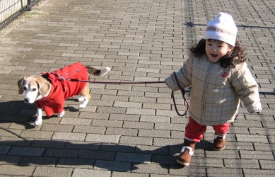 きのう 夕方にやってきた有佳里はママのホッケーの試合のため 夜はお留守番。お風呂で「しゃがんで〜」と言うと 胸のうえ位まで お湯につかる。 「もっと〜」って言ったら あご すれすれまで しゃがんだ。 たいしたもの!と婆々バカだわ〜 マロンの朝の散歩は みんなで 行った。 有佳里は初めてマロンの散歩紐 を持って大喜び♪ いつもは 匂いを嗅ぎながら のそのそ歩くマロンなのに今日は 有佳里に負けまいと思うのか 走っている。 有佳里も負けずに走って早い事!(笑) 散歩のビデオは ここ 見てね♪ |