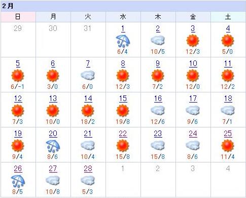 2月19日(日) 最高気温9.6℃ ![]() |