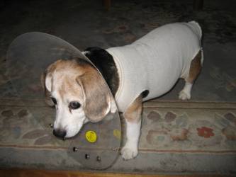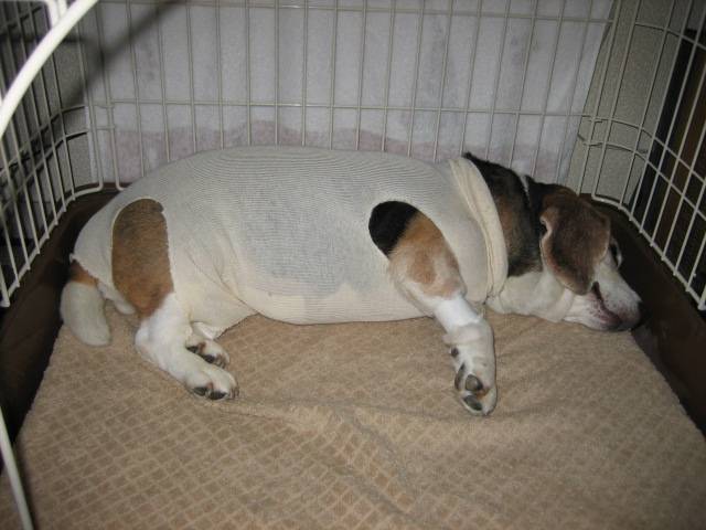 朝10時に「草創舎」に電話をして、マロンが退院出来るか聞いた。 | 「マロンちゃん、わりと元気ですよ、今日退院しても大丈夫です」と聞いてホッ♪ すぐに迎えに行った。春口先生に抱っこされて登場(笑)したマロンは しっぽをフリフリして、大好きな主人の姿を見て とっても嬉しそう♪ ビデオは ここ 家に着くと 部屋を確認しているのか 元気に歩き回わる。 エリマキトカゲのような「エリザベスカラー」が テーブルの足やソファーなどに ぶつかって歩きづらそうだった。 ビデオは ここ ヨタヨタしながら歩いていたマロンも 疲れてしまったのか、それとも家に帰れて ホッとしたのか、 ハウスでぐっすりと夕方5時位まで寝ていた。 夕食の時は、主人のおこぼれをもらえると期待いっぱいの顔で、見つめていたが 先生から「少し痩せた方がいいですね」と言われたので、もらえず、がっかりの顔に(笑) お腹の腫瘍を取り除いて 縫い合わせたので 皮がパツパツの状態で はじける可能性があるので、布に血がにじんできたら、もう1度縫いますので お電話をくださいと言われた。 なんだか怖〜い! 29日が抜糸の予定なので、その日まで 何事もなく過ごせますように。。。 |